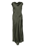 TWP's Back to You is a cowl neck maxi dress in shiny satin. This fabric is a lightweight viscose satin with a silky liquid finish. Back To You is a bias cut dress, fitted to your natural silhouette with a low cut back and a strap across the upper back with hanging straps. Complete with a concealed zip and elegant train at the back.