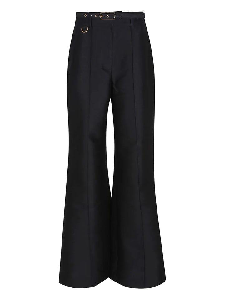 The Hypnotic Flare Pant from Zimmermann's Fall 2025 Collection, Hypnotic. A wool blend pant featuring a wide flare silhouette, centre front pintucks and side seam pockets.