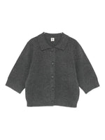 Close-up view of the Como Short Cardigan in Grey Melange, highlighting the soft wool-cashmere blend fabric.