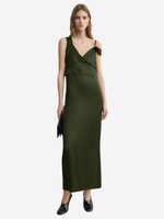 V-Neck Slip Dress in Bottle Green by TOTEME, elegantly styled for a sophisticated look perfect for evening wear.