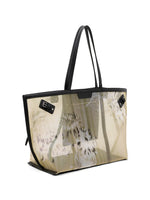 Detailed image of the Days Carryall in Artichoke by Proenza Schouler showing the leather base and vibrant chrysanthemum print.