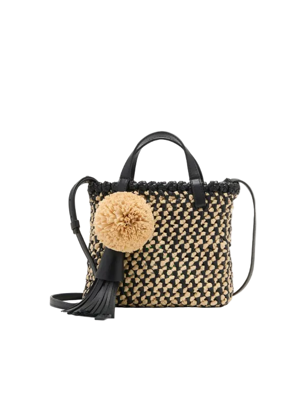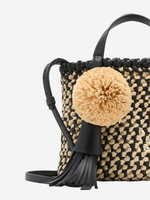 An essential for summers near and far, Ulla Johnson's Raffia Crossbody takes shape as a mini tote hand-woven from black leather and a raffia textile in a lush geometric pattern. The handmade pompom and tassel add a playful touch. Adjust the strap to wear as a crossbody or carry elegantly by the top handle.