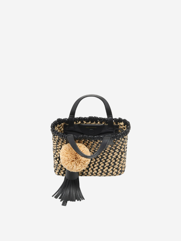 Composition: Raffia-effect textile and leather
