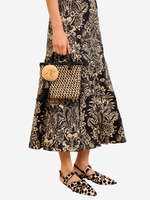 Ulla Johnson's Raffia Mini Crossbody in Noir Natural showcasing the vibrant raffia textile texture.