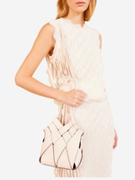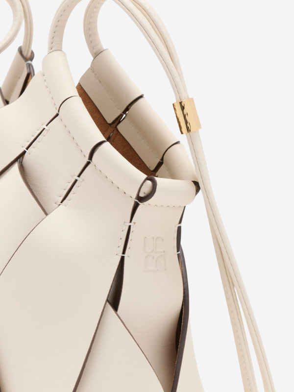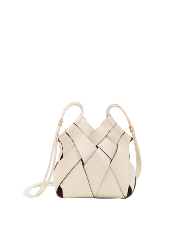 Ulla Johnson's Charlotte Crossbody is a masterpiece of artisanal craft inspired by traditional basket weaving. Using time-honored handmade techniques, each leather panel is individually crafted and carefully shaped into a distinctive silhouette, then further refined with hand-painted edges. Debuting on the SS25 runway in elegant white, this crossbody has an internal suede-lined base to secure your belongings and tubular straps for comfort. It is finished with signature antique brass hardware.