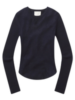 Close-up of the fabric texture of the Alessia Crewneck Sweater in Navy, highlighting the soft feel of the wool and cashmere blend.
