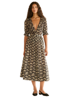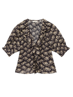 The Henri top by Doen is a soft, mid-weight organic cotton voile rendered in our Rosier Floral print. With a plunging V-neckline framed with cascading lace-trimmed ruffles, the bodice is detailed with delicate pin tucks at the yoke, back, and puffed short sleeves. A line of hidden starburst buttons run up the center front.