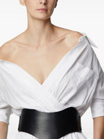 Close-up of the open collared neckline of the Lydia Dress in Optic White from Altuzarra.