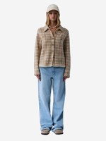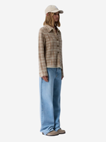 Model wearing the Dylan Plaid Shirt in Mist Combo, perfect for city days and casual outings.