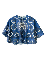 The Blaise top by SEA New York features a geometric print, short sleeves and self-tie closures with tassels. It pairs effortlessly with the Blaise pants for a coordinated, resort-ready look.