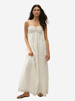The Etta dress by FaithFull is a vintage-inspired maxi dress, designed from a delicate cotton broderie in a warm white. Ruched through the bust with a delicate frill detail along the neckline and thin straps, adjustable in length, it falls into a gathered empire waist with an A-line skirt.