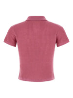 Back view of the Shrunken Polo in Rose emphasizing the signature branding at the neck.