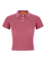 Full view of Shrunken Polo in Rose highlighting the elegant cashmere fabric and stylish design.