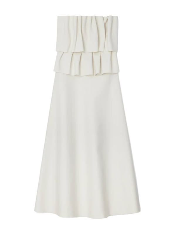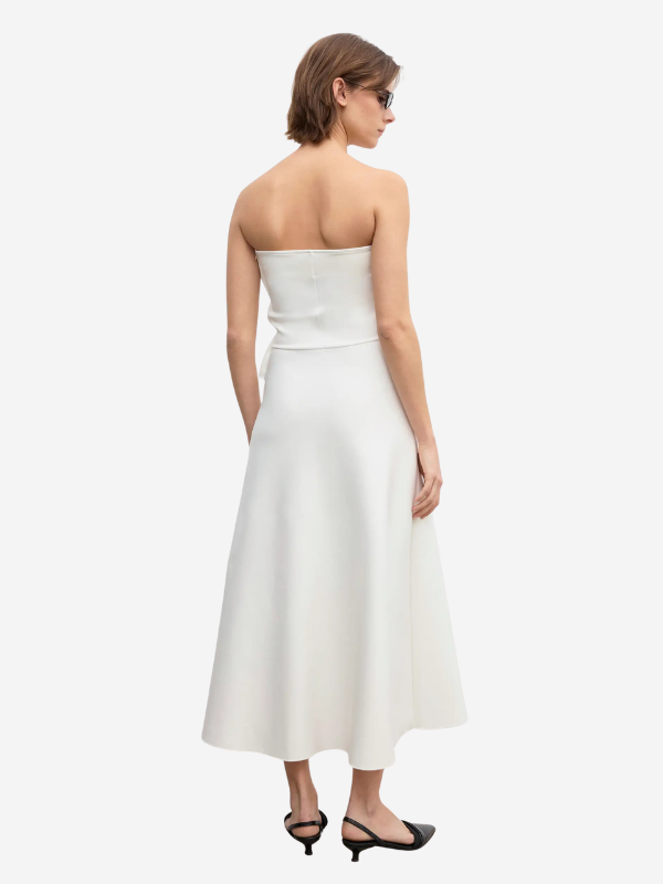 Flat lay of the Sculpted Tube Dress in White by House of Dagmar, showcasing its clean lines and chic style perfect for various occasions.