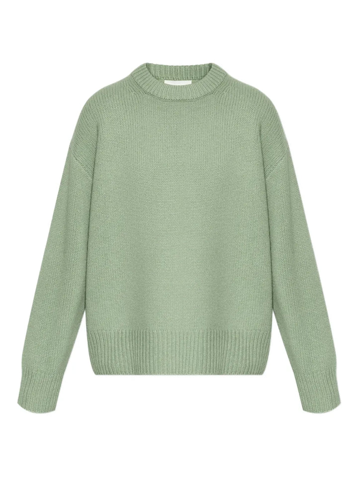 Flat lay of the Renske Sweater in Seafoam highlighting the luxurious 100% cashmere material.