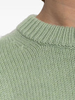 Up close view of the Renske Sweater in Seafoam showcasing its rich cashmere texture and chunky design.