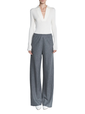Bias Cut Trousers in Heather Grey by Maria McManus, showcasing a relaxed wide leg fit and elasticated waistband.