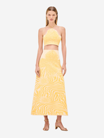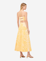 Model wearing the Gala Top in Yellow Bloom paired with the Jazlyn Skirt.