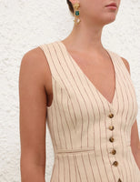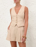Style profile of the Rebellion Pinstripe Waistcoat in Cream Stripe from Zimmermann, perfect for summer outfits.
