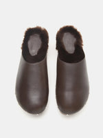 Chic Mink Brown Clog by Le Monde Béryl, highlighting its luxurious mink insole and sturdy rubber sole for all-day comfort.