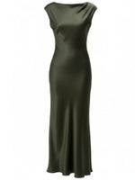TWP's Back to You is a cowl neck maxi dress in shiny satin. This fabric is a lightweight viscose satin with a silky liquid finish. Back To You is a bias cut dress, fitted to your natural silhouette with a low cut back and a strap across the upper back with hanging straps. Complete with a concealed zip and elegant train at the back.