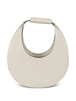 Close-up view of the Mini Moon Bag in Cream, showcasing its sleek leather exterior and magnetic closure.