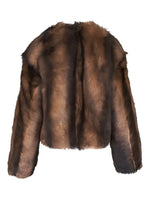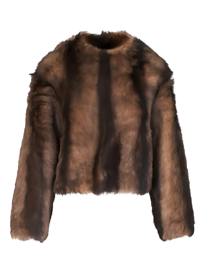 Stylish Elan Shearling Jacket in Camel/Brown by Nili Lotan showcasing a relaxed fit and fur hook closure.