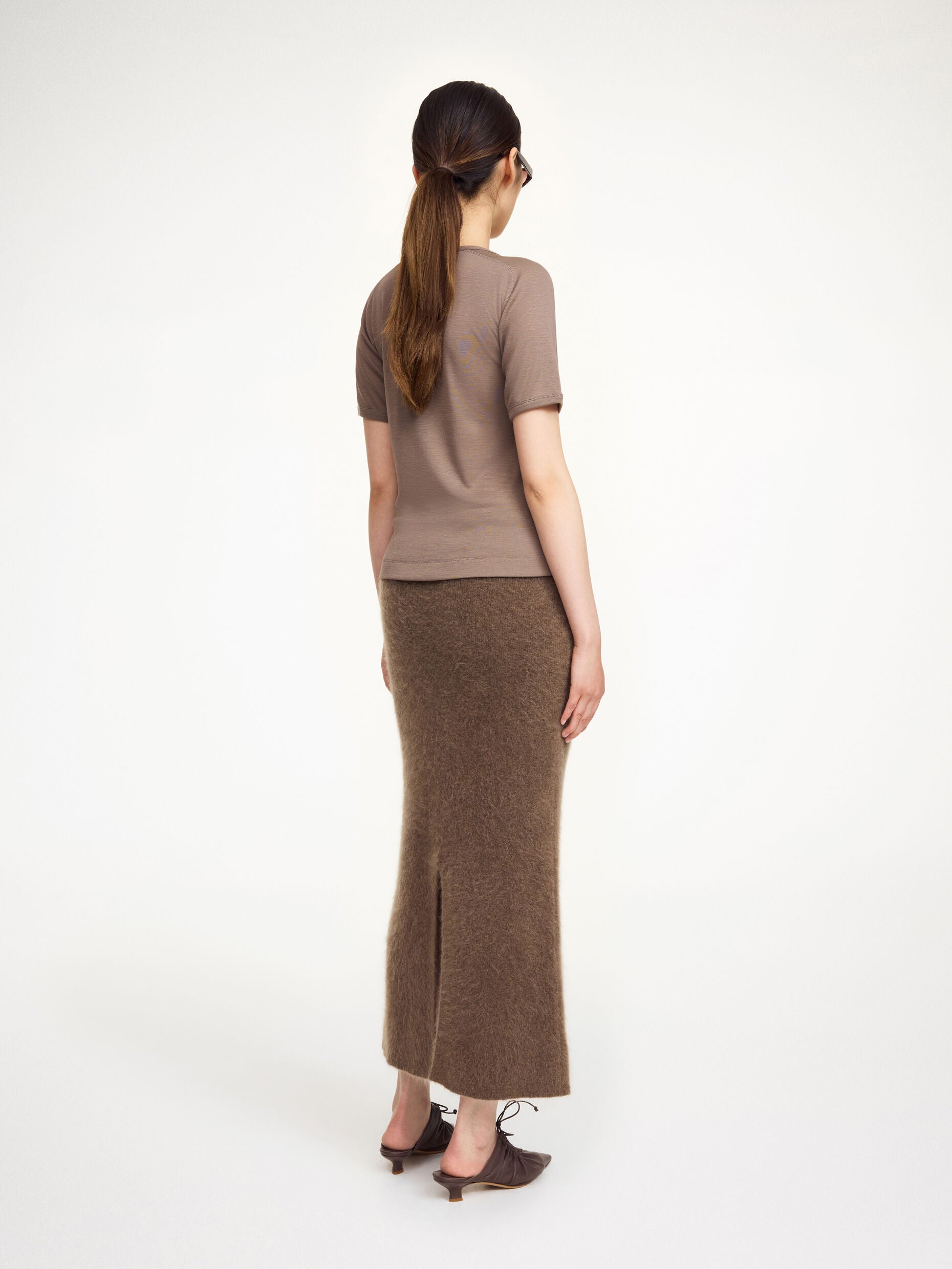 Add a tactile touch to your cold-weather wardrobe with By Malene Birger's Estille skirt. The minimalistic midi shape, which is cut from a fluffy mohair blend, sits comfortably on an elastic waist.