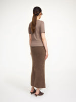 Model wearing the Estille Skirt in Chocolate Chip by By Malene Birger, styled for a winter outfit.