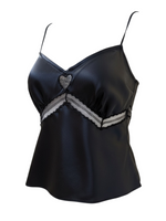 Staud Terra Top in Black featuring luxurious stretch silk satin with spaghetti straps and lace cutout details at the bust.