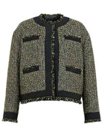 Front view of the Ulla Johnson Carmella Tweed Coat in Tapestry showcasing its elegant design and shimmering lurex fabric.