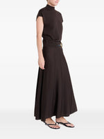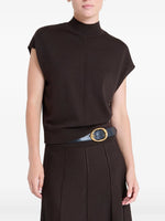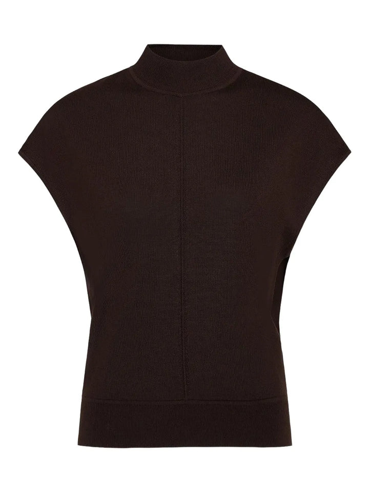 TWP's Wren Top is a mock turtleneck featuring pick-stitch detailing along the cap sleeves and down the center seams. Crafted in a light weight merino wool blend. Pair with the Willow Skirt for a matching set.