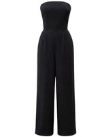Jade Jumpsuit in Midnight featuring a strapless design and wide-leg silhouette made from drapey wool crepe by TWP.