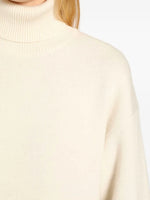 Close-up of the fabric texture of the Broad Turtleneck Dress in Milk, highlighting its cashmere and wool blend.