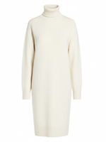 Model wearing the Broad Turtleneck Dress in Milk paired with high boots, perfect for winter fashion.