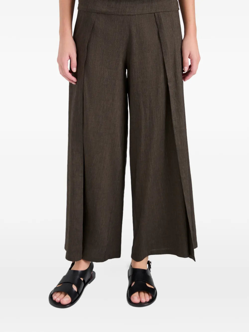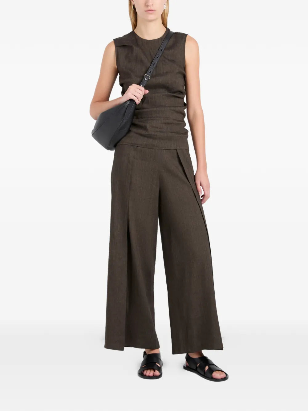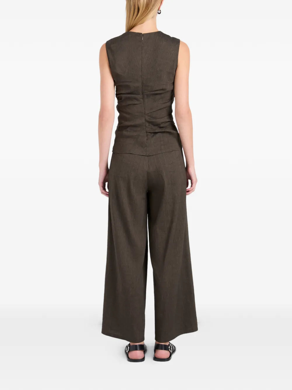 Close-up of fabric texture of the Calla Pant in Coffee by Proenza Schouler White Label, made of linen and rayon.