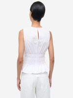Back view of the Staud Culver Top in White with a keyhole detail, highlighting its stylish peplum shape.