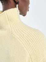 Detail shot of ribbed sleeves on the Primrose Yellow Mock Neck Sweater by Maria McManus.