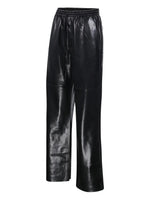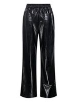 Close-up view of the black Nanushka Calie Trousers highlighting the Okober alt-leather texture.