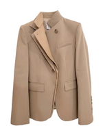 TWP's Double Take is a single-breasted blazer in trench chino twill. Fabric is 100% cotton twill with a water-repellent finish. The Double Take Blazer is designed with a layered lapel and built-in underlayer for the appearance of a double blazer. Finished with sculpted seaming, a chest welt pocket, side flap pockets, and custom-molded shoulder pads.