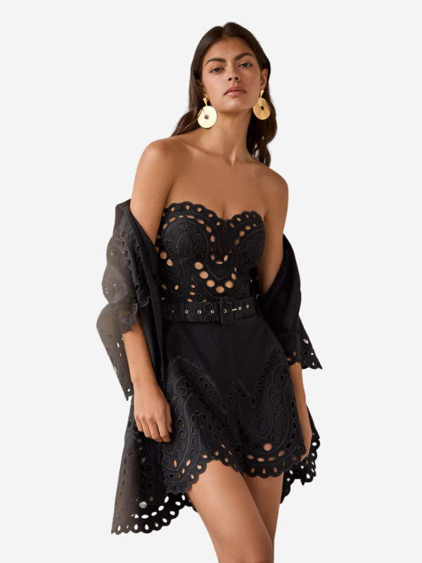 The scalloped hem, adorned with organic-inspired embroidery, brings texture and visual charm. A matching belt defines the waist and adds a touch of character. A versatile and refined piece, ideal for elevating any daytime look.