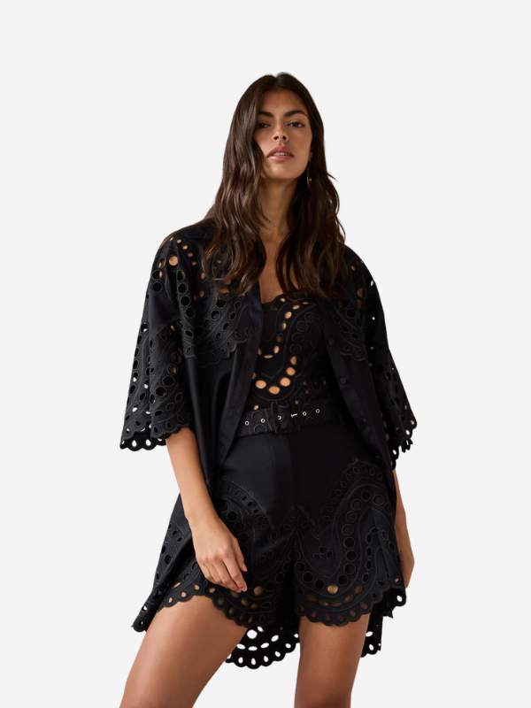 The DUNE Shorts by Charo Ruiz strike the perfect balance between structure and lightness with natural elegance. Crafted from embroidered cotton, they feature a high-waisted fit that flatters the figure and a subtly flared silhouette for ease and movement.