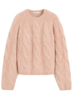 Close-up view of the Elliot Sweater in Rose Dust, highlighting the soft mohair composition and intricate knit pattern.