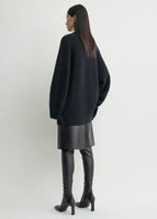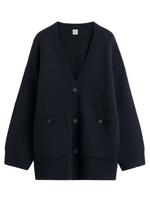 The cozy Longline Cardigan in Navy by TOTEME with double-knitted fabric and spacious patch pockets.
