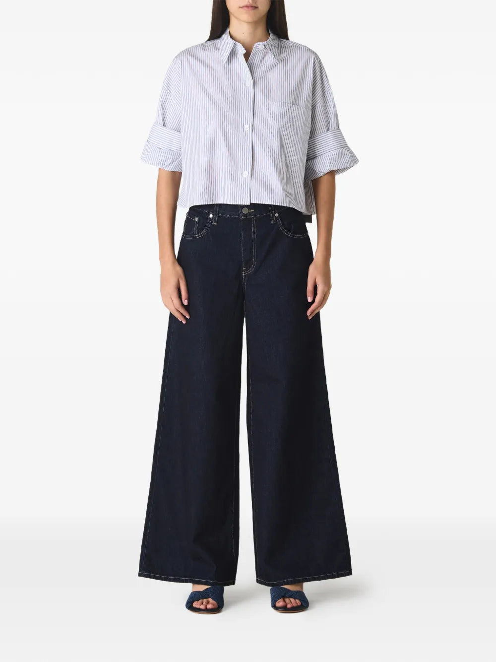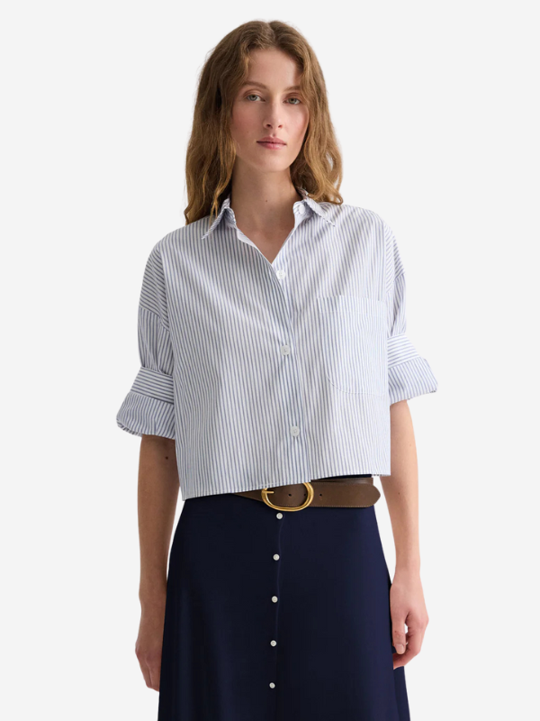 TWP’s Next Ex is their signature short sleeved button down crafted in superfine Italian cotton shirting. The Next Ex is a cropped, boxy silhouette, complete with a chest patch pocket, button up placket, spread collar, and their signature double roll button cuffs.