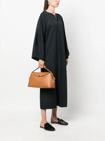 T-lock Grained-Leather Top Handle in Tan by TOTEME, showcasing its elegant silhouette and luxury craftsmanship.